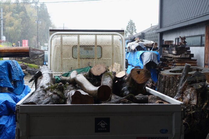 ■ MUKU-DATA 柿の木(白)レスキュー 4/10 燕市 近所で柿の木を倒してるから要る?と木材愛のあるお客さんから電話をもらう。木男として、折角のお心遣いを無下にはできない。例えそれが白であれ、黒であれ、赤で…