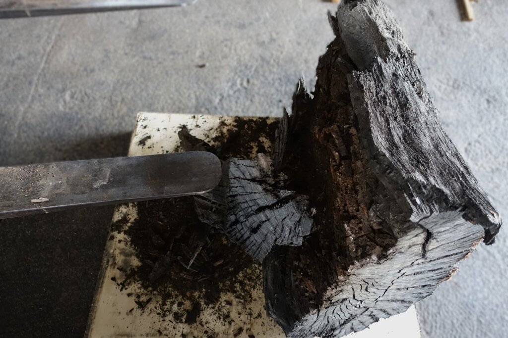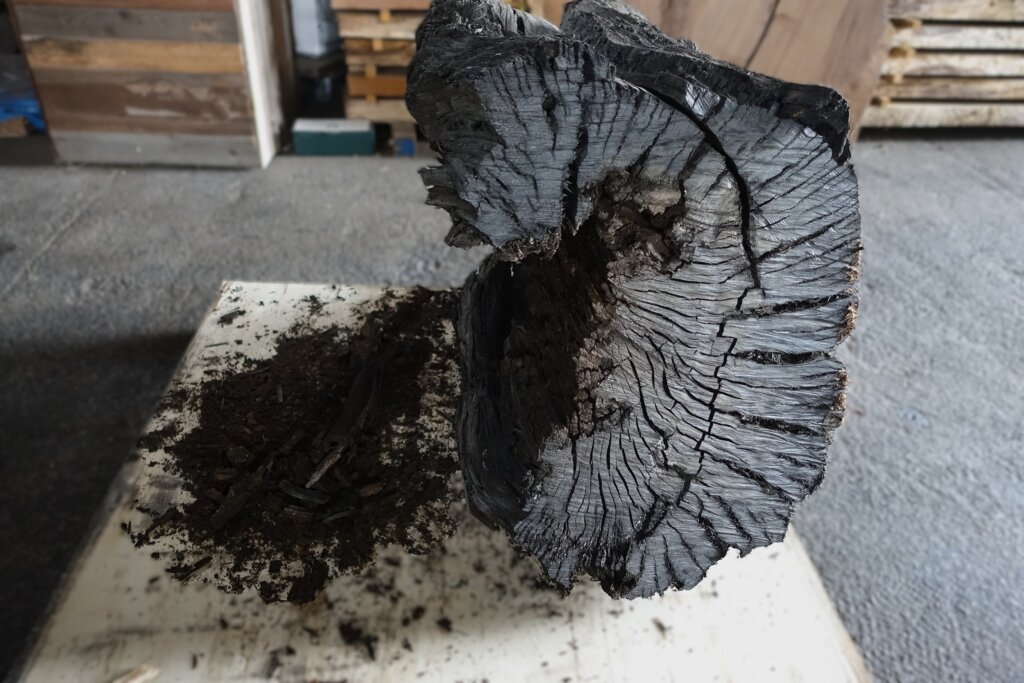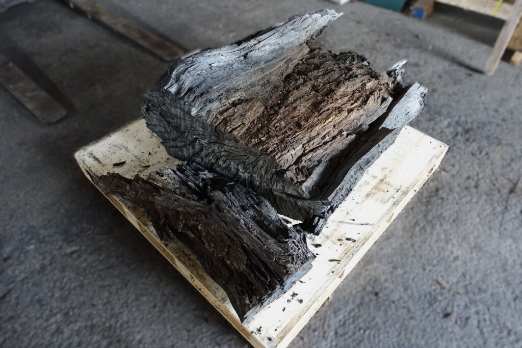 もう何年も屋外に置かれてあった神代木(黒いから栗とか楢か?)の丸太の一部