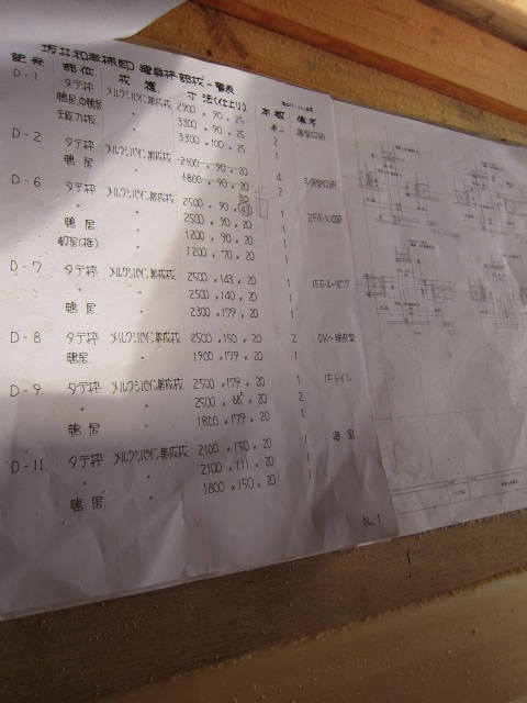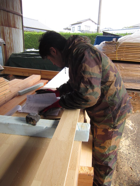 施工図を基に坂上さんが寸法を書き出し小林大工さんが木取りして加工という流れです。