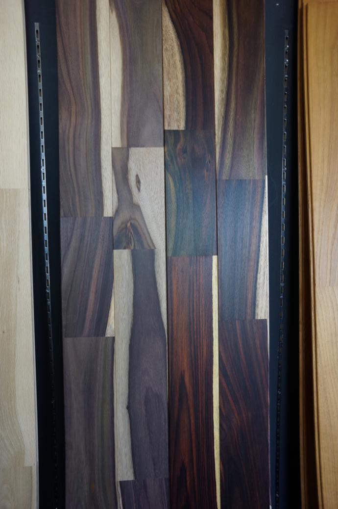 ■ MUKU-DATA 無垢フローリングサンプル各種 チークのように少し色の濃い床材を検討中との事で、 ミャンマーチーク UNI 90x15mm / OPC 150x15mm、 メルバウ OPC 150x15mm ウォ…