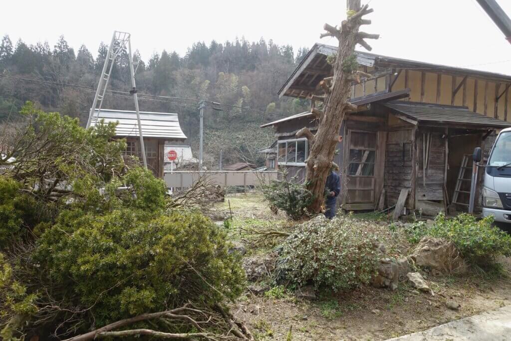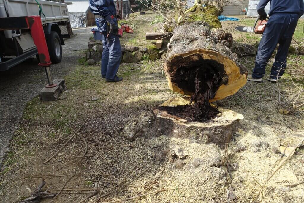 お付き合いのある造園屋さんと伐採経験がある弊社の石川で伐採させていただいた。