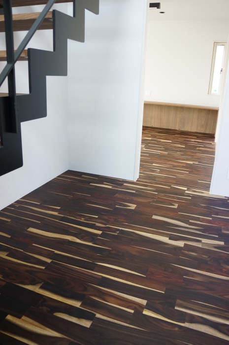 黒系の床材では、以前ロックファーの耳白フローリングを貼ったお宅がありましたが、