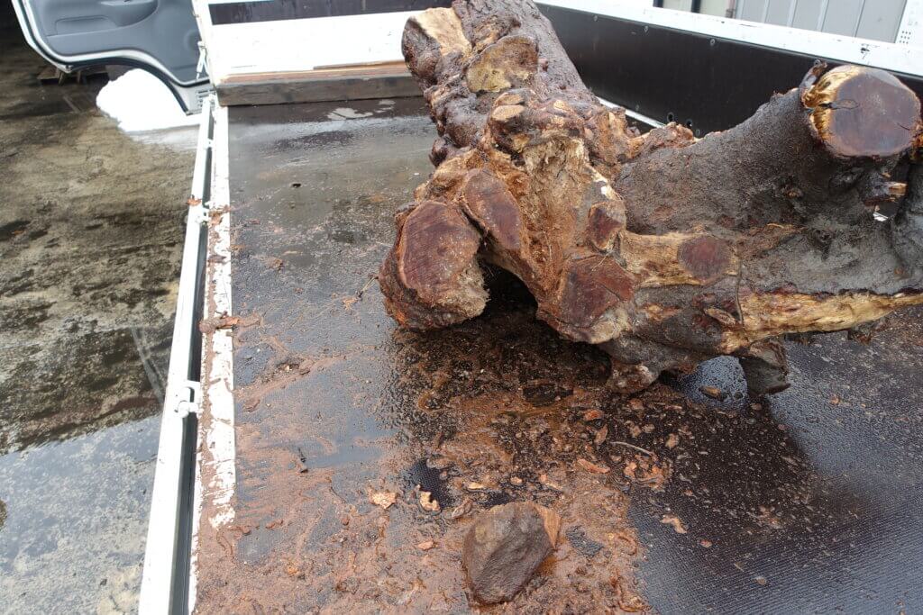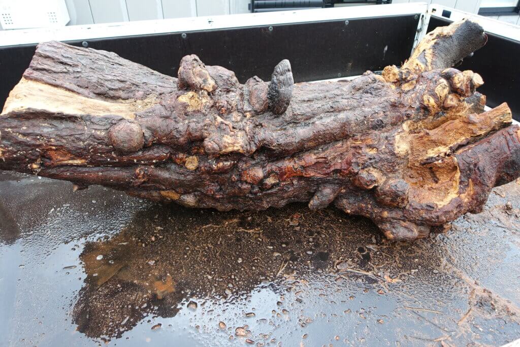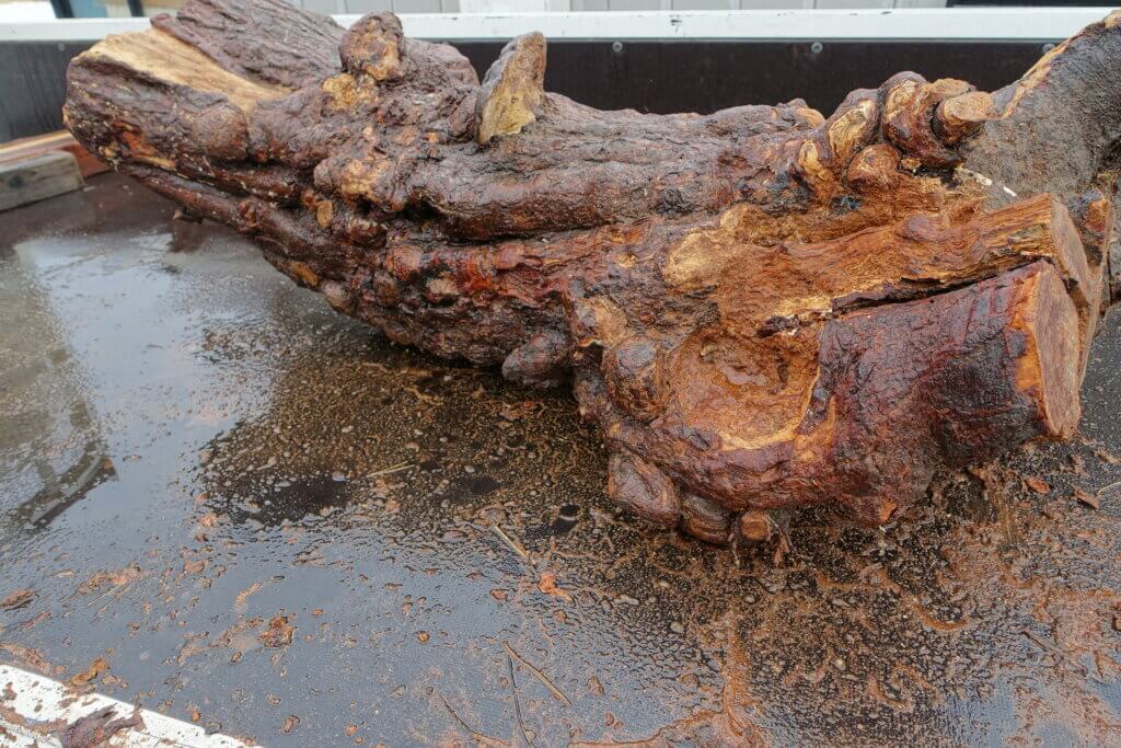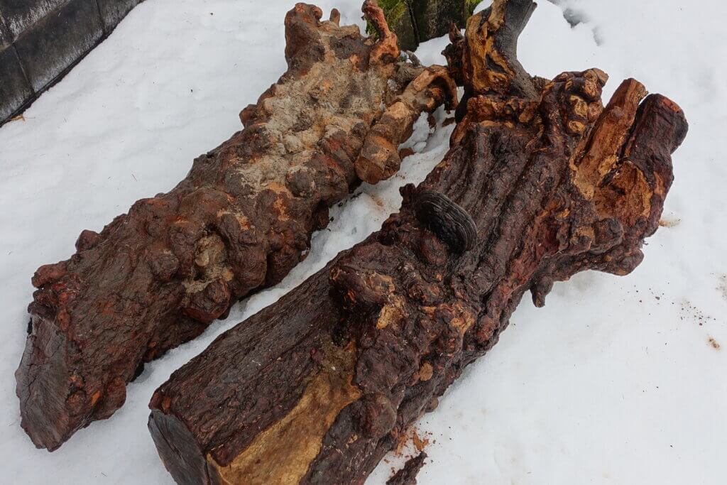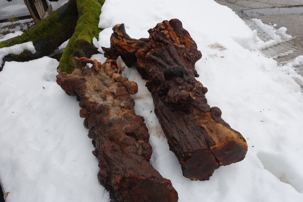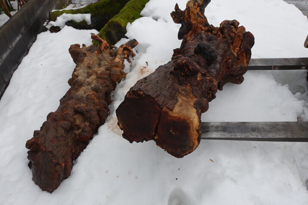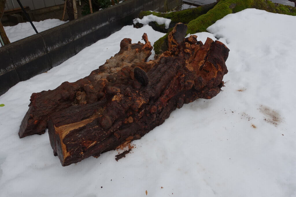 この丸太にとっては何十年ぶりの外の空気だろう・・・