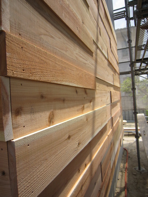 外壁:杉板ラフ挽き AD材 巾120/150/180/210mm  厚み15/21/27mm