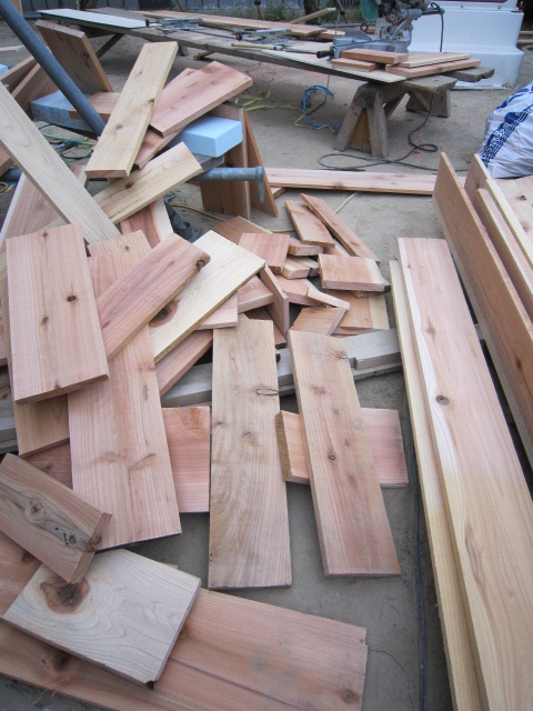 昨日今日と朝から現場で大工さんの手伝いをしながら板張りをしていました。