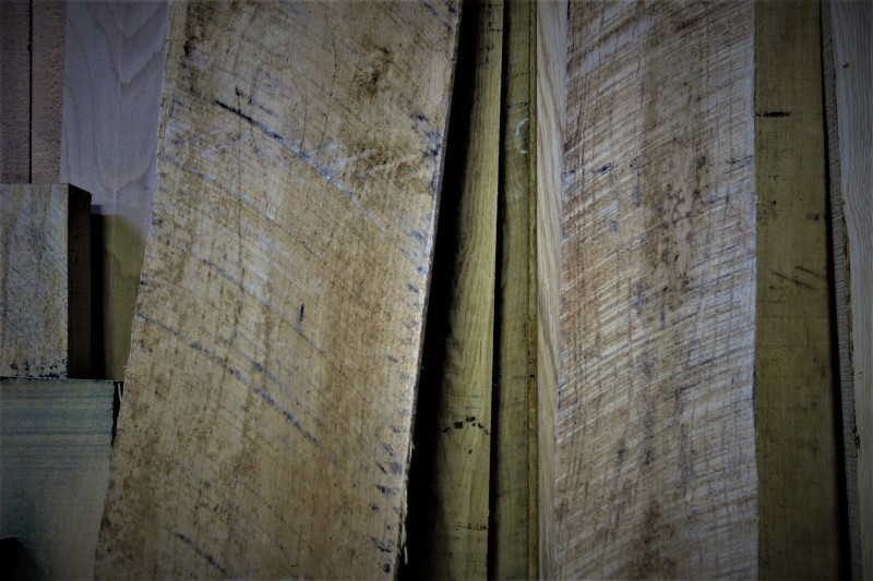 ■ MUKU-DATA 左:ホワイトオーク 右2枚:ホワイトアッシュ ぜんぶ平らに削らずに帯鋸目など残すこと、 ちょっとラフな感じの仕上げ材にはこれもありか。。 どこまで削ってどれくらい残すか? それは削る人、作る人のセンス、 微妙な加減で出来上がったものに個性が宿る。 左:帯鋸(ホワイトオーク)、真ん中:現地挽きギャングリッパー(ホワイトアッシュ) 右:現地挽き残し仕上げ(Wアッシュ)