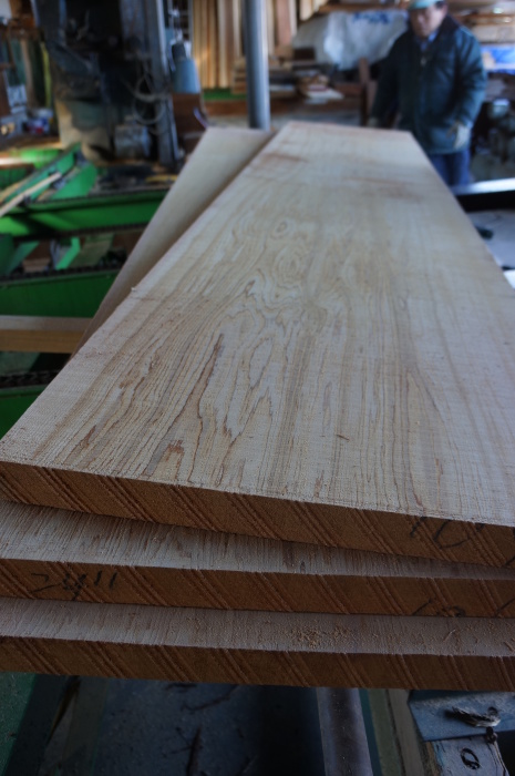 米杉の巾600mmの盤があったので数枚板を挽きました。