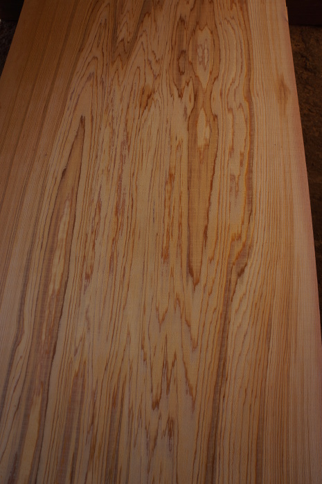 米杉は年輪巾が細かく目詰まりがいいので、板挽きするとこのような木目となります。
