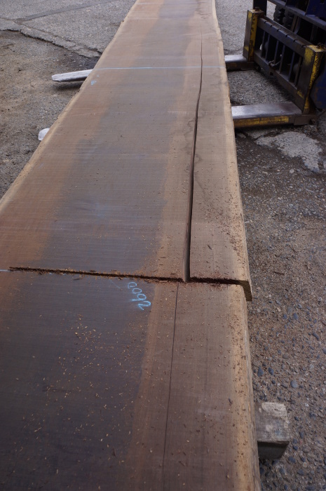 ここに割れが60cmあるので2.6mに切り、割れを除いて2mの天板かな?等