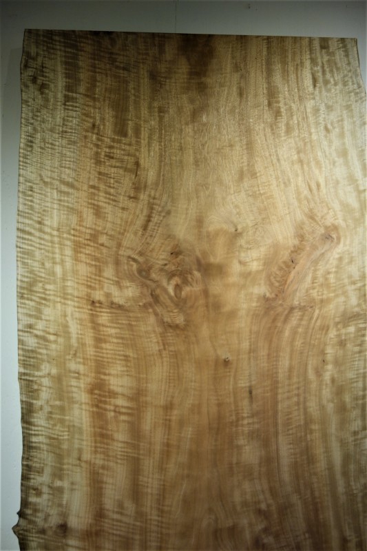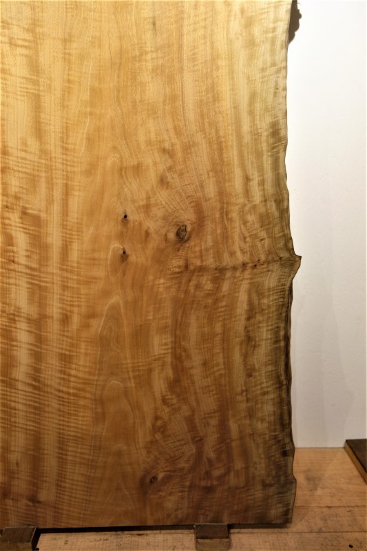 ■ MUKU-DATA 椨(タブ) 2150 830-850-920 t58mm 乾燥材 モルダー済み 2019 11/1 SOLD OUT 全面に縮み杢が入ったタブノキです。 木目の中心に少し小ヒビが入ってしまいました。 (削りたてに、私がエアコンを消し忘れ、翌日に小ヒビが入ってしまいショック過ぎでした) 浅いヒビですので、それほど気になりませんし、 もしかしたらもう一回削り、サンダー仕上を行なう過程で取れるかもしれません。