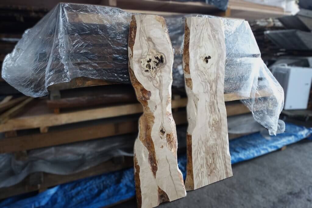 弊社で桟済みして保管してある材の中の小さめの材の2枚を削ってみた。