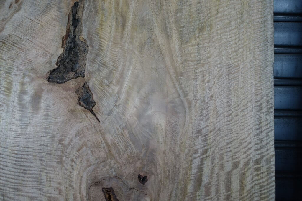 今回は赤身部分は殆どなく、全面白地に縮み杢が入っている木になります。
