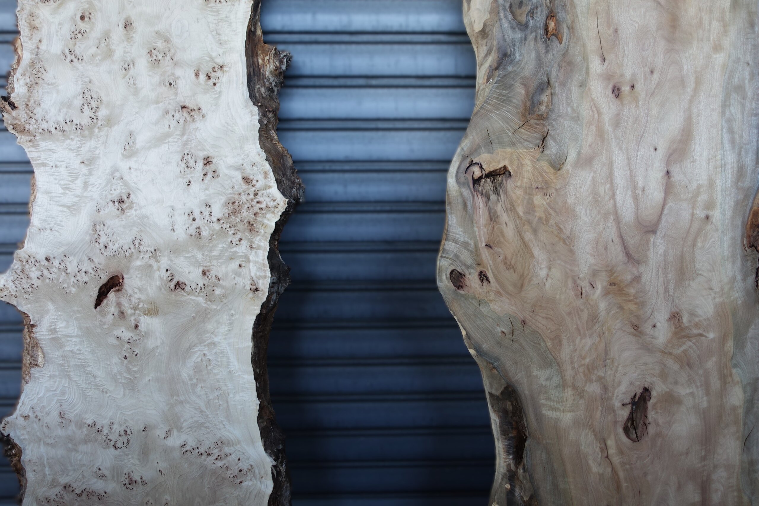 手前の梱包を出して、凹んでしまった茶神代欅の板を整理する。