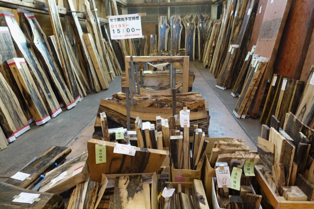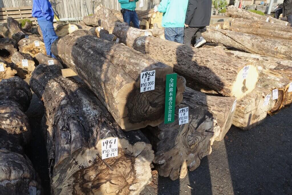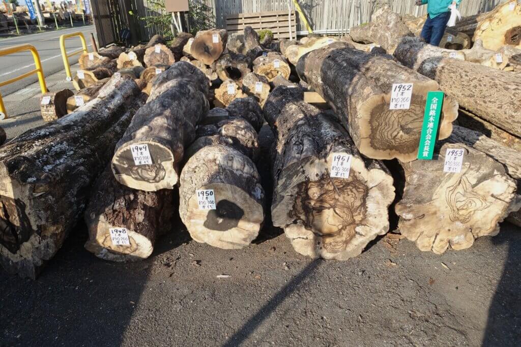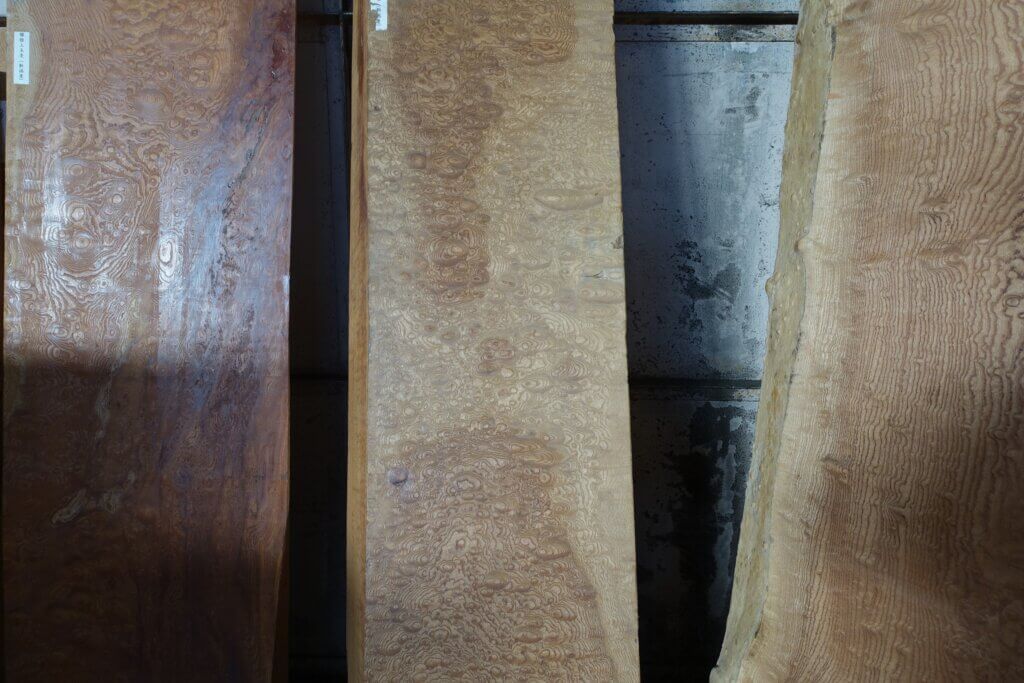 年々良材が少なくなっているのは耳にするし、実際に並ぶ銘木類を見ていてもそれは実感できる。
