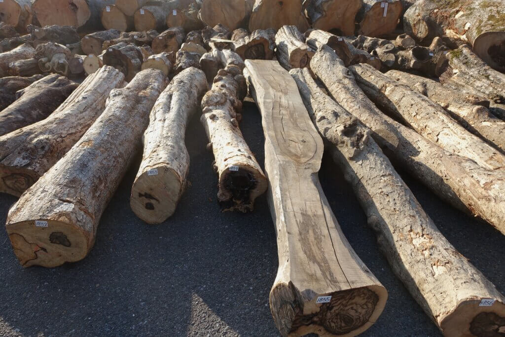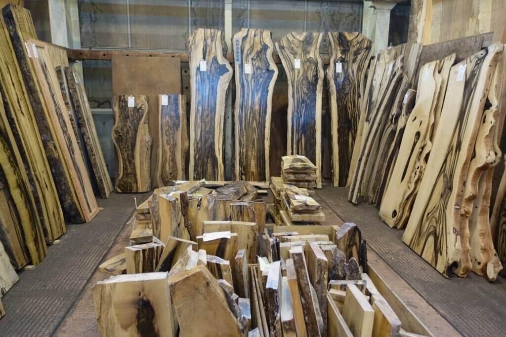 良材も少なくなる中、形、全体の見た目、人気の材種、木工用の細かな端材など