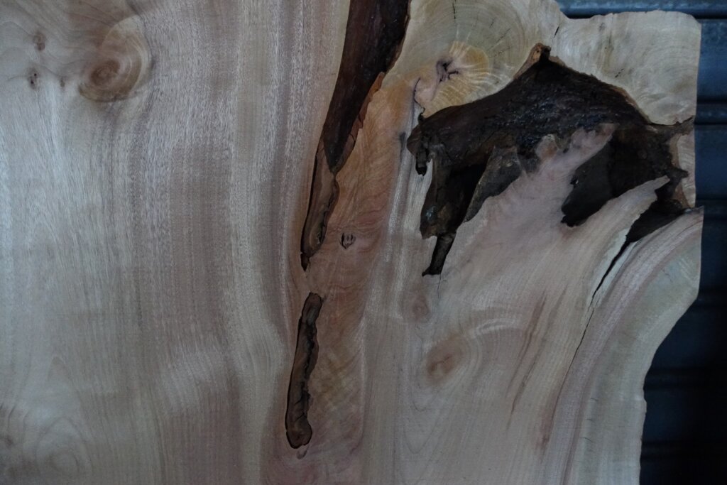 でも天然乾燥させて削ってみると一枚板天板としても十分に使えそうな木かと思います。