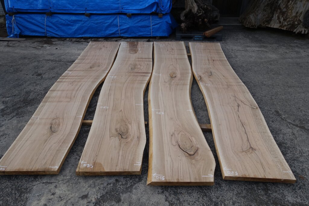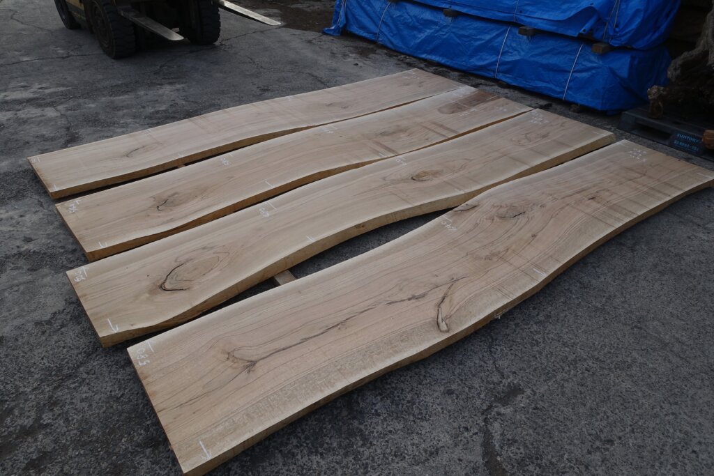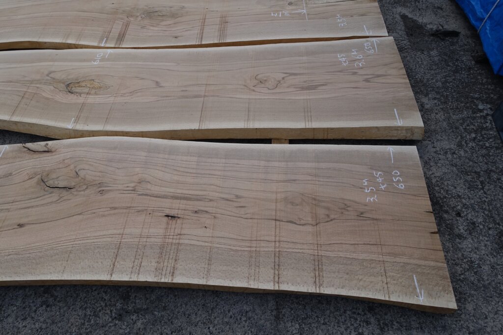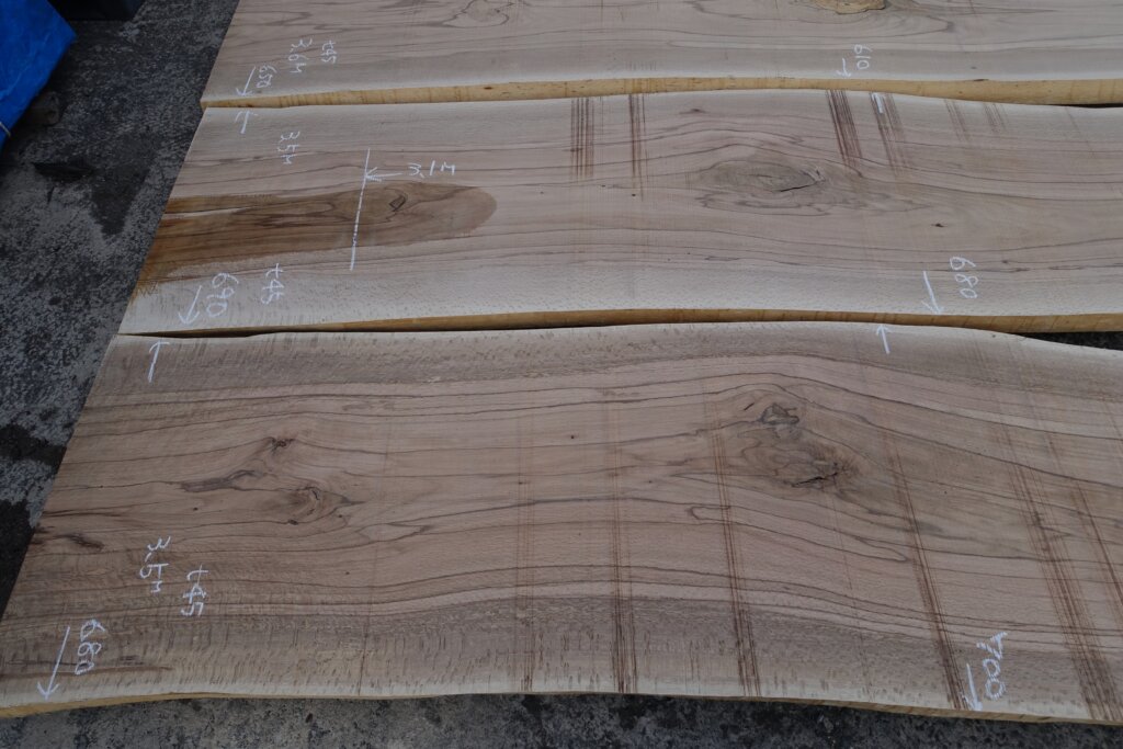 厚み60mm程度に修正挽きできたのですが、取り扱いなど考えて、粗木の状態で45mm厚とした。
