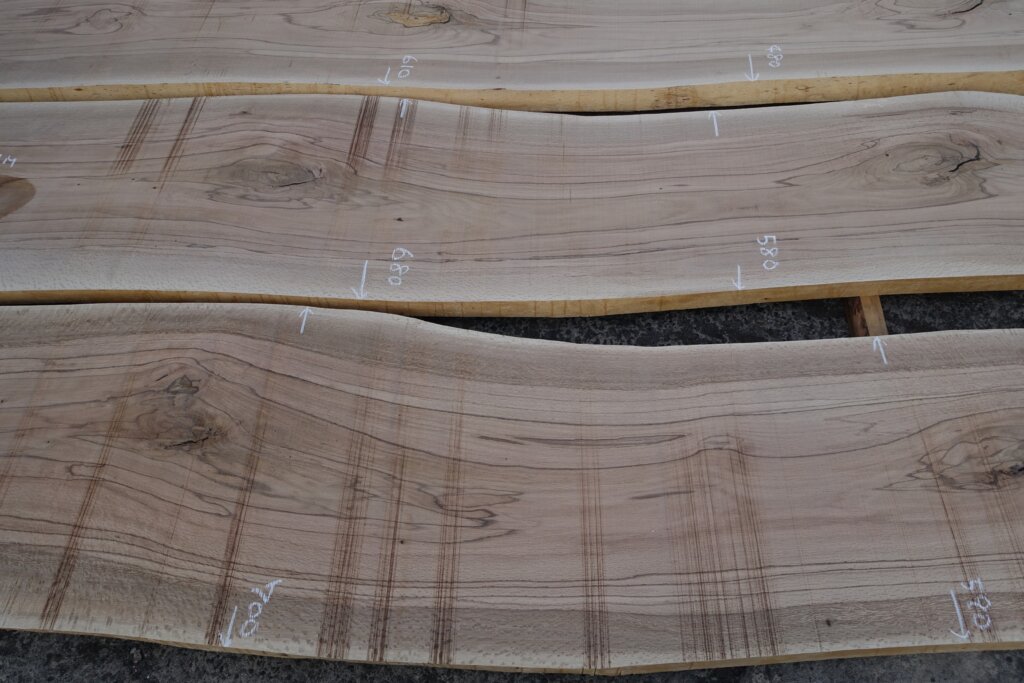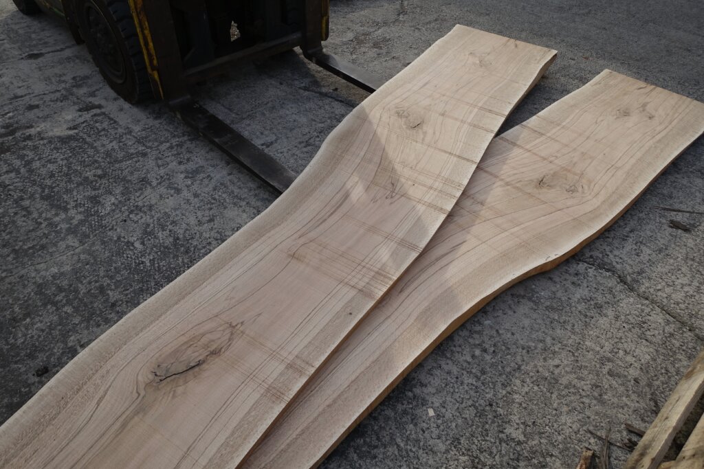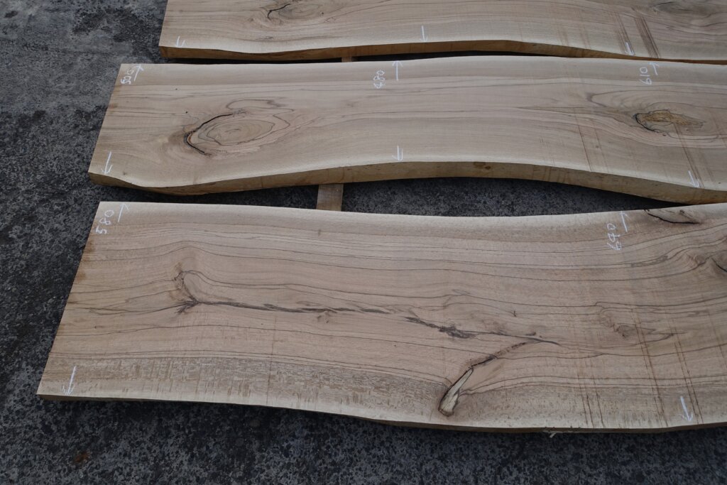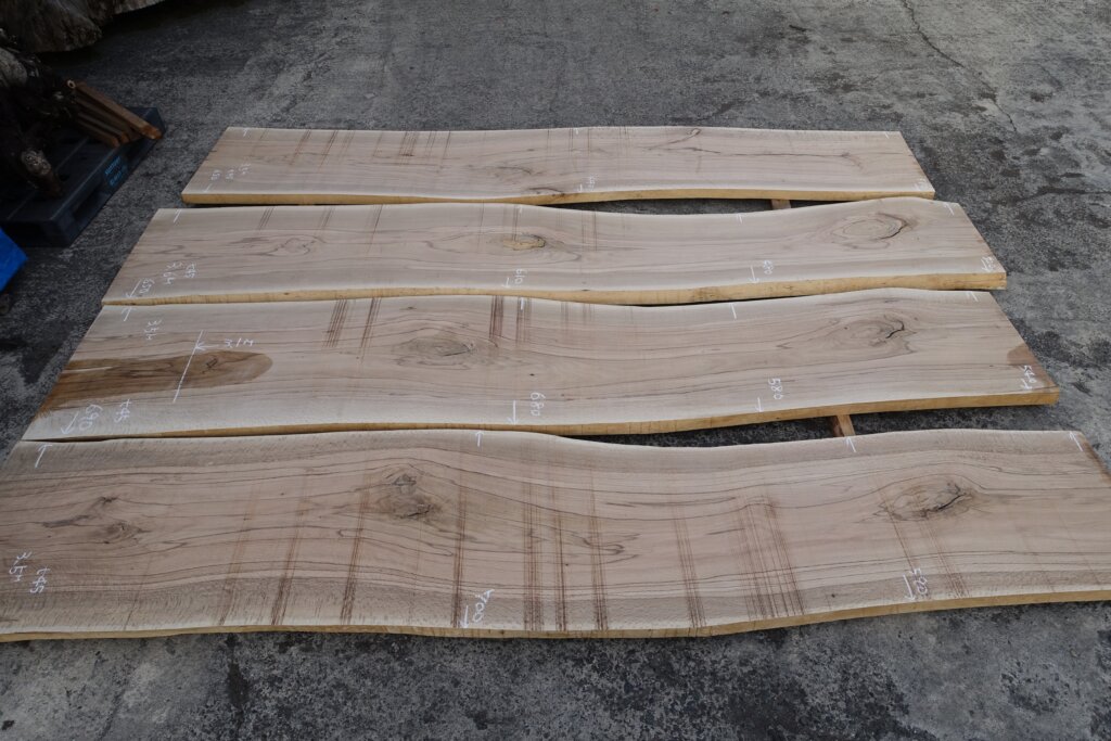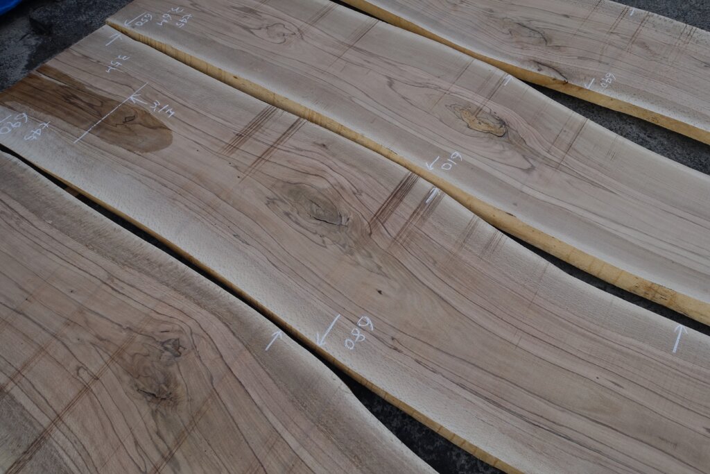 厚み60mm程度に修正挽きできたのですが、取り扱いなど考えて、粗木の状態で45mm厚とした。