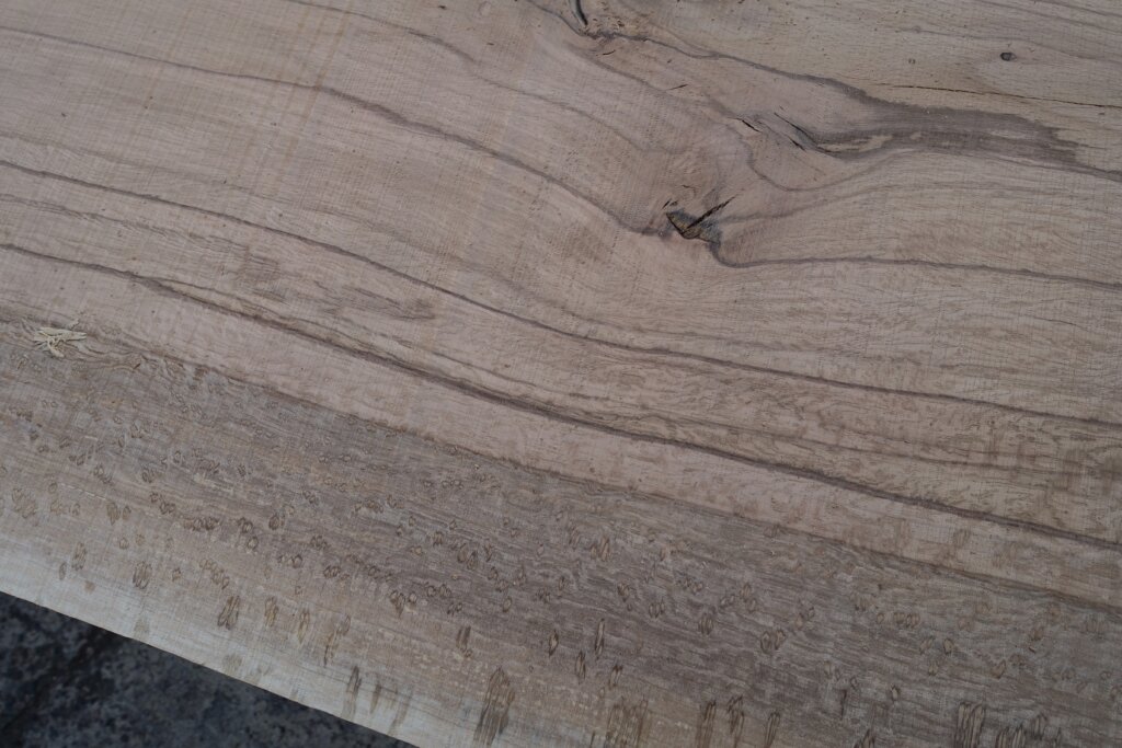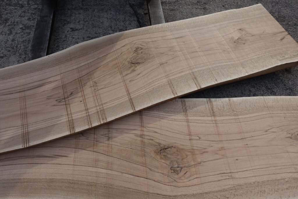 製材すると材面に黒い縞模様が入り、ウネウネとした模様が躍動感を与える。