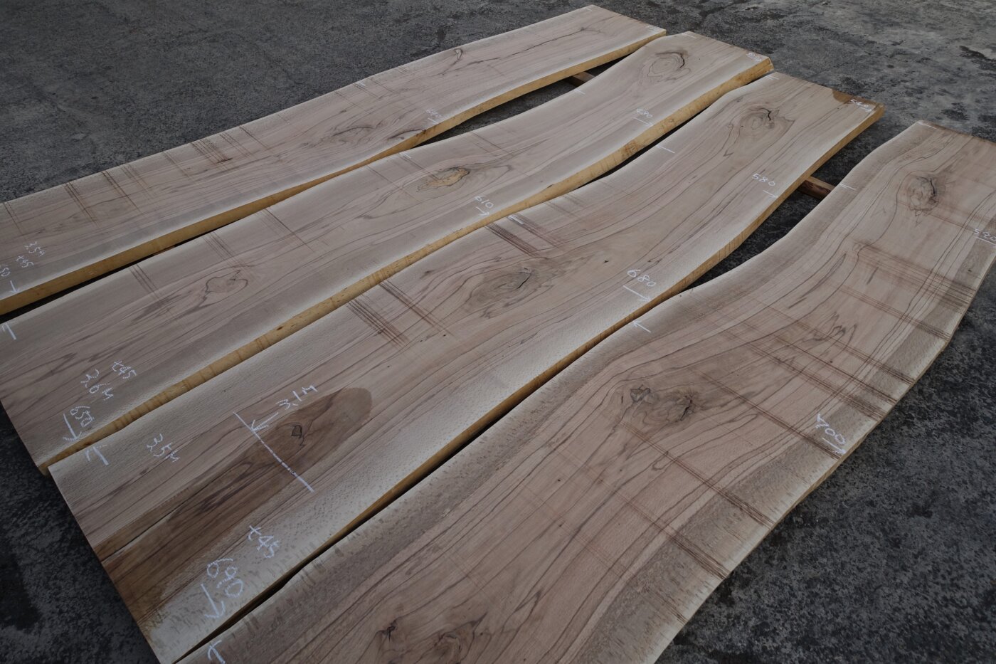 ■ MUKU-DATA 樫 牡丹杢 3.3m 540~650mm程度 厚45mm 天然乾燥材