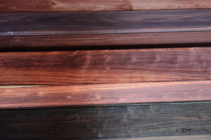 鉄刀木(タガヤサン)はウェンジとかと比較しても色で分かり易いかと思う。