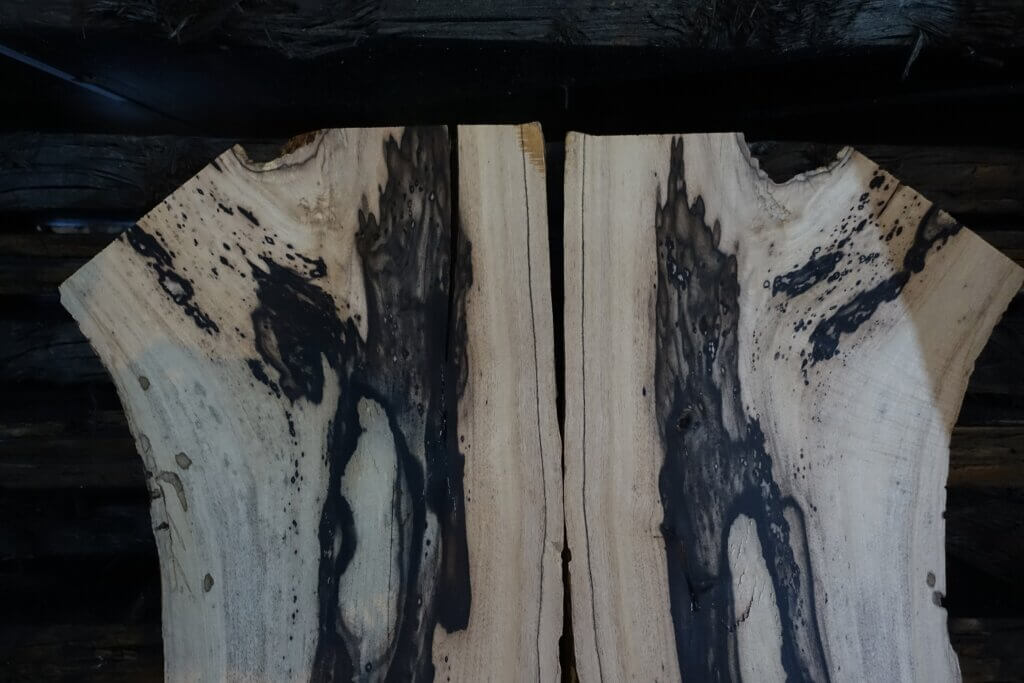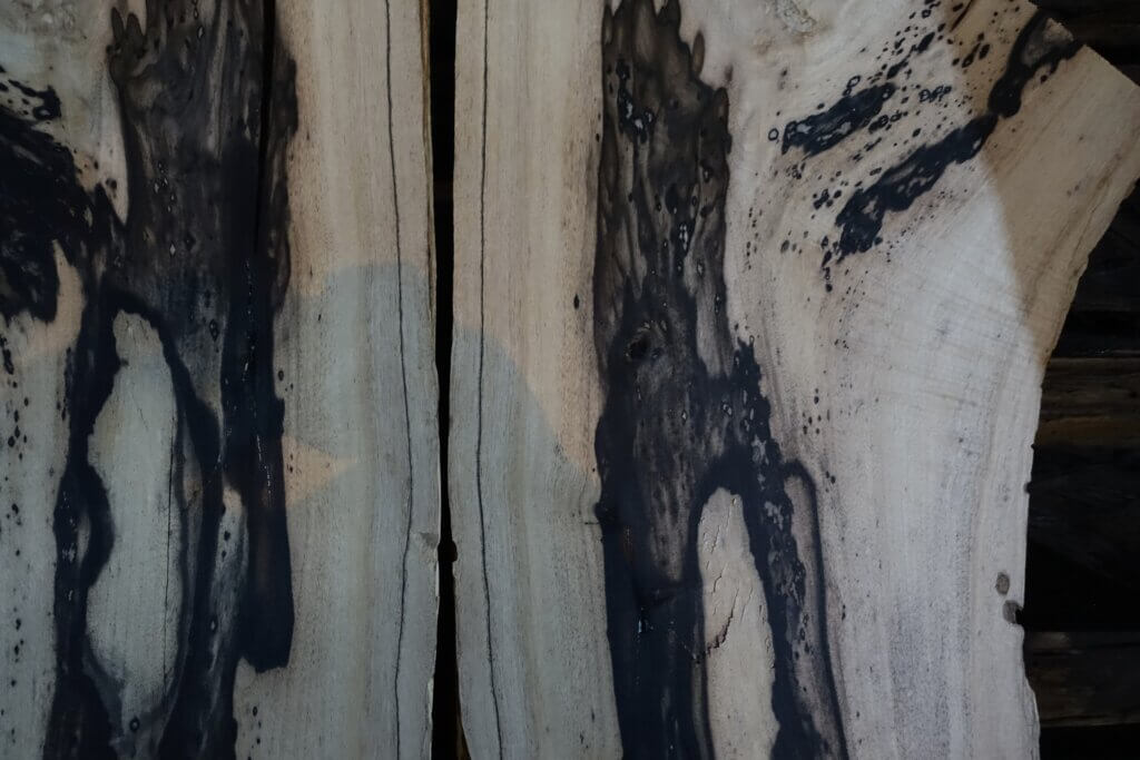 この墨汁が流れたような杢目は1枚で使うよりも2枚のブックで
