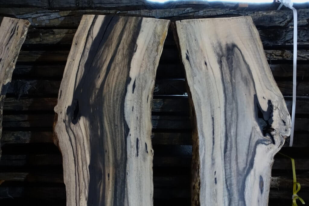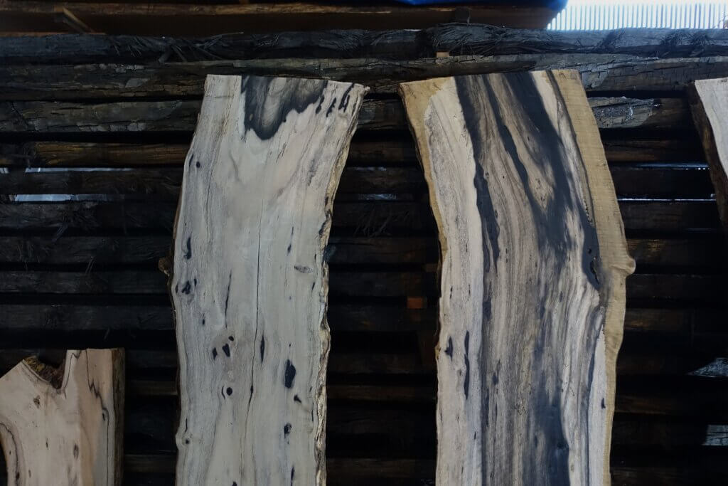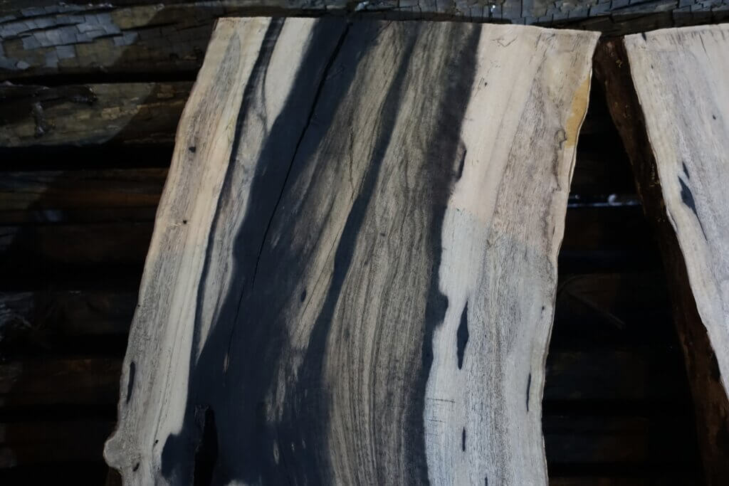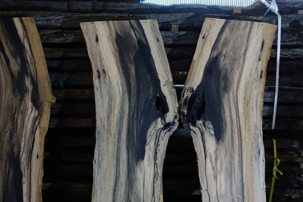 これらの黒柿はずっと本社の事務所脇の部屋においてあった板で