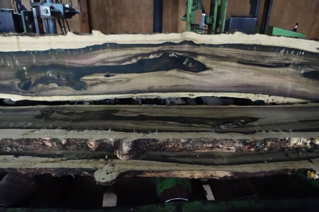 先週、何本か黒柿丸太を製材した。