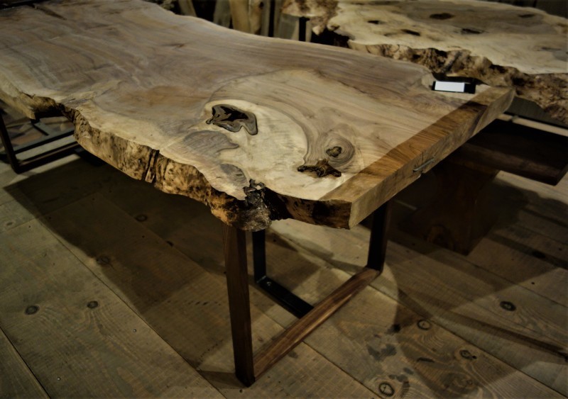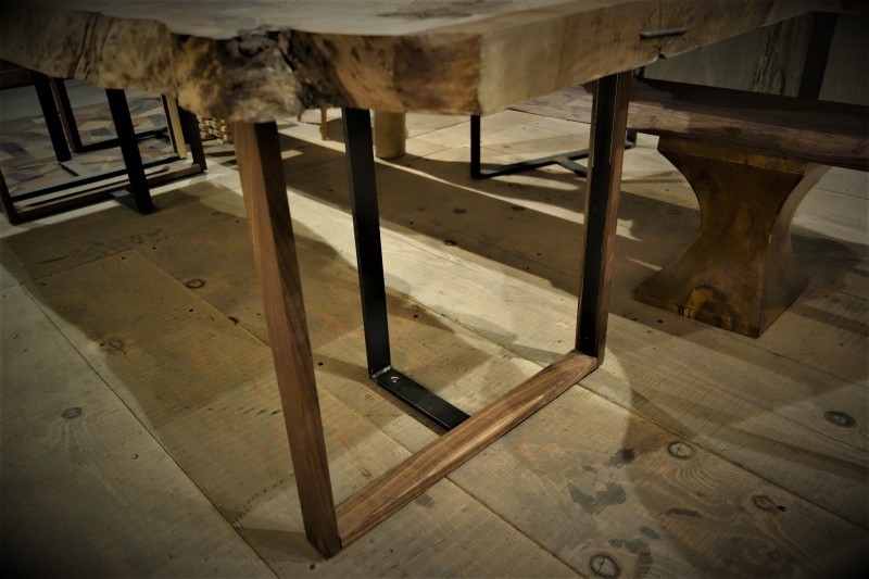 ■ MUKU-DATA 鉄脚 D type 鉄+ウッド3 木部:ウォールナット 前回の縦に木2本の C:typeに更に足元横に1本追加した D:type 例えば、足元の1本だけ色違いの木を取り付けることも可能。 一枚板天板と脚材とのコーディネートはあなたさま次第で自由に取付可能です。 個性的な天板に、脚もお好みの木を取付けてみてはどうでしょうか? アジャスター付き、受注生産品(納期は約3週間ほど)となります。