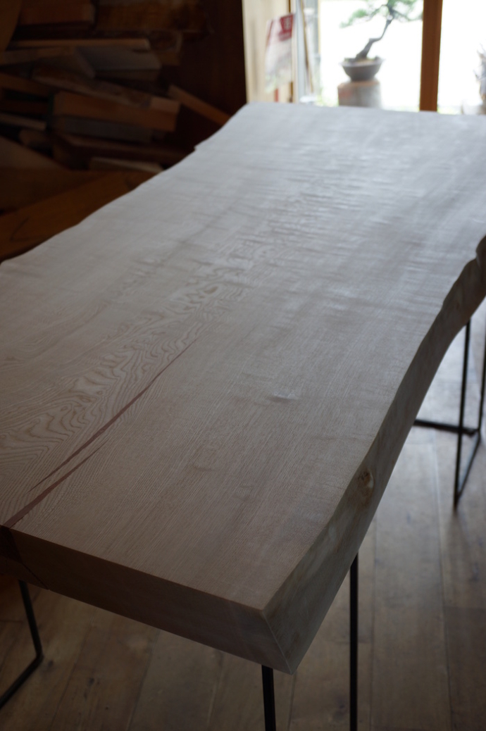 ■ MUKU-DATA 栓 1600 750-660-730 58mm SOLD OUT 魅力的な杢がのった栓の板に埋め木を施しました。 埋め木の材料は花梨です。 当店、無垢フローリングは得意とするところですので、…