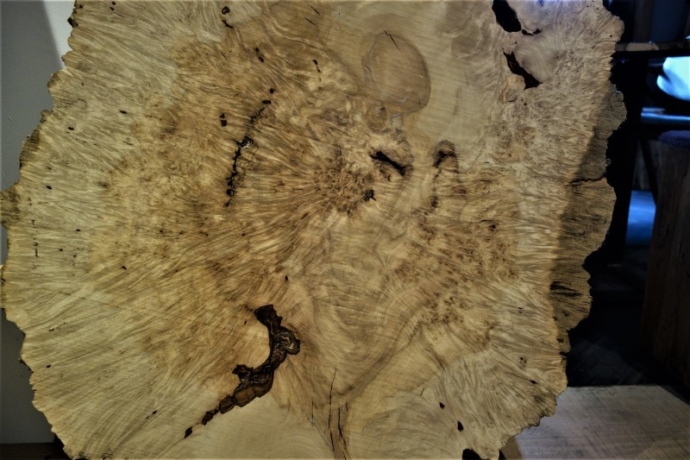 ■ MUKU-DATA 栃 瘤杢 900×380~800 t35mm 乾燥材 SOLD OUT ご予約いただいた栃だが、なかなかこんな杢もそう見ないので載せておこうと思います。 輪切りではないのですが、幹…