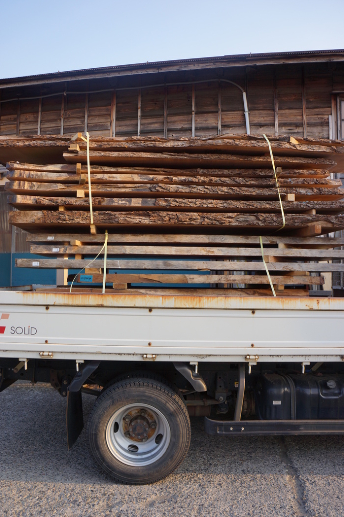 ■ MUKU-DATA 一枚板 タブ、クルミ、ケヤキ、アサダ トラックに乗って旅立っていきました。 お元気で・・・ いい出会いを! この部屋にしばらく一緒だったアサダが先に旅立って クラロが何だか寂しそうにしてる・・・…