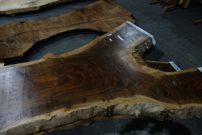 ■ MUKU-DATA クラロウォルナット Y字一枚板 約2000x900mm 共木2枚 未乾燥材 Y字の一枚板は、運ぶのも製材するのも大変だし、 丁度枝分かれする部分じゃないといけないのもあり、 また枝の部分の木…