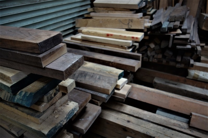 ■ MUKU-DATA 広葉樹平割材の端材 建築用枠材などを木取りした際に、節がある部分、アテのある部分、カットして残った短材など 300mm以上はまだ部材として使えるのでストックしておいたものです。 これを座卓の脚を…