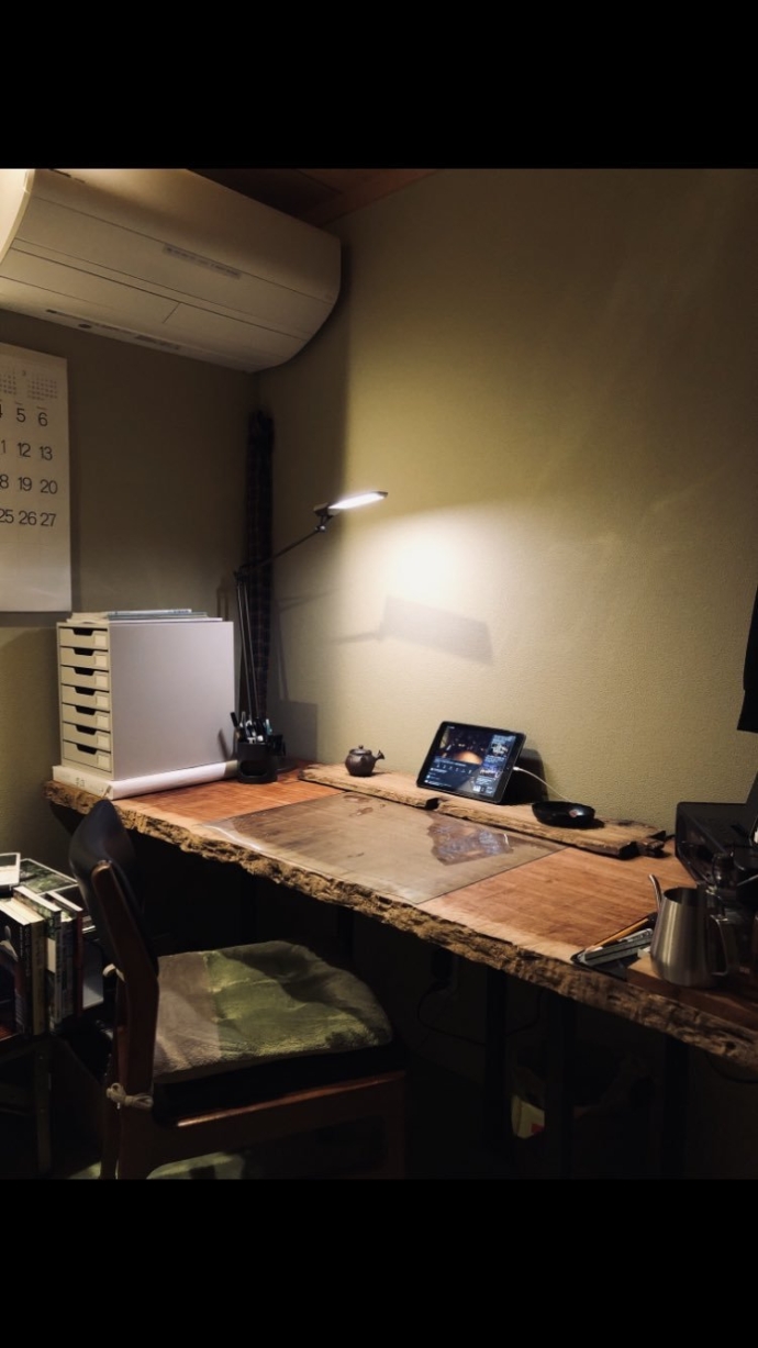 ■ MUKU-DATA ボセ 柾目 一枚板カウンターデスク お客さんから写真をいただきました。 個人事業主さんで寝室の一角にボセのこのカウンターを設置して 朝の事務仕事、御見積り等をここで行っているとの事です。 ここに…