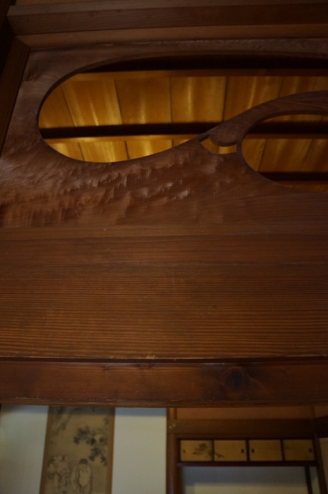 大胆に瓢箪の形に切り取った透かし欄間の材は杉かと思われますが、
