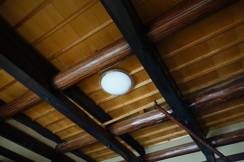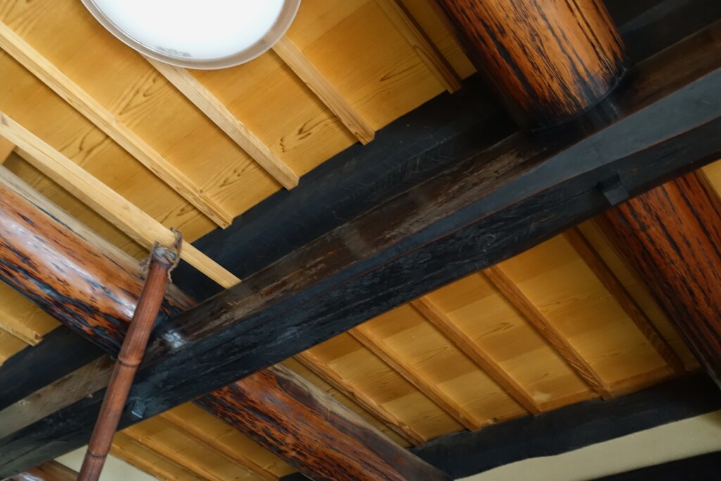 以前見て聞いたことがあるが煤けて黒くなった井桁の梁は