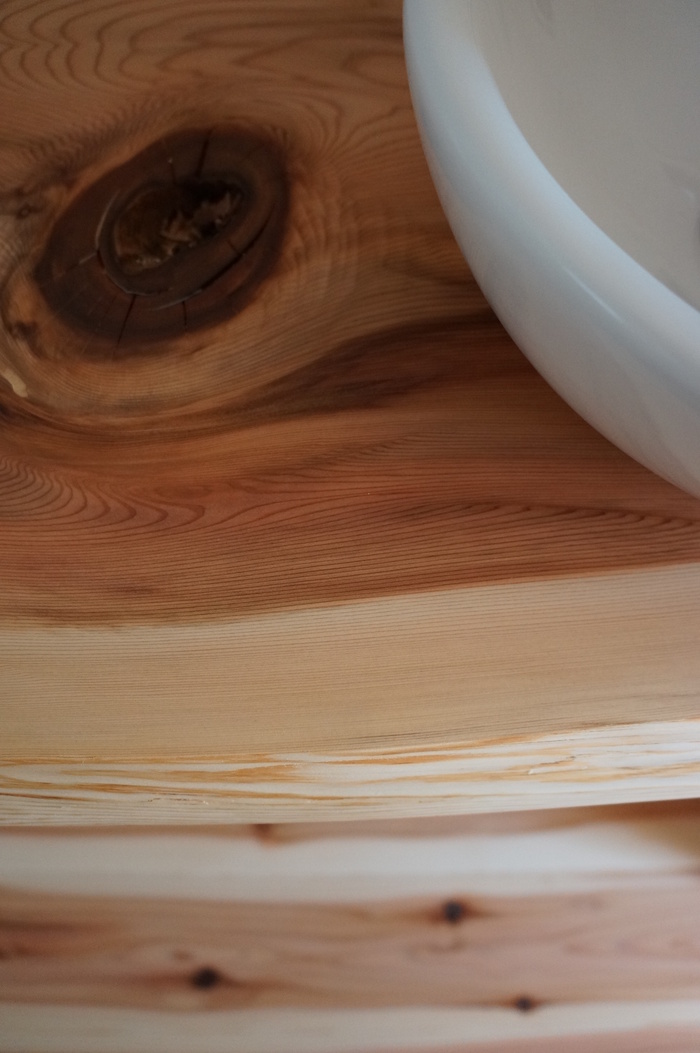 杉床の表情が強いので例えばウォールナット集成など使用しても