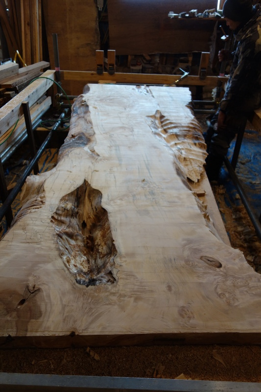 写真の栃は実際にテーブルとして使うには辺材の耳部分が大きいので