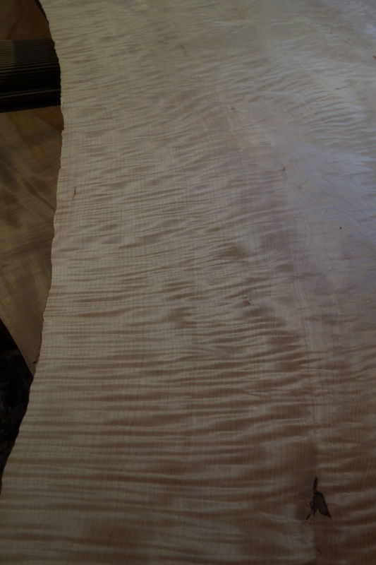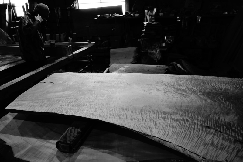 ■ MUKU-DATA 栃 縮杢・虎杢 SOLD OUT 杢の載った栃です。 木表側の中心付近は樹皮の凹みがあり機械で一様に仕上げてしまうと 大きな穴が開いてしまいますので、 木表側は水平に仕上げ、木裏使いでセンター部分を少し盛らせて仕上げました。 (最終仕上げ前の状態) 材の状態を確認しながら微調整できるのが手加工のいいところです。 写真は木裏ですが、一枚板に関しては状態に応じて木裏使いもありかと 思っています。 全体に縮みが入った良い杢目です。