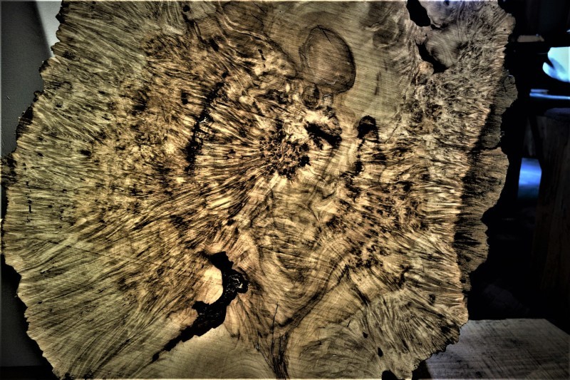輪切りではないのですが、幹?枝?に出来た瘤の部分を挽いたものかな。。