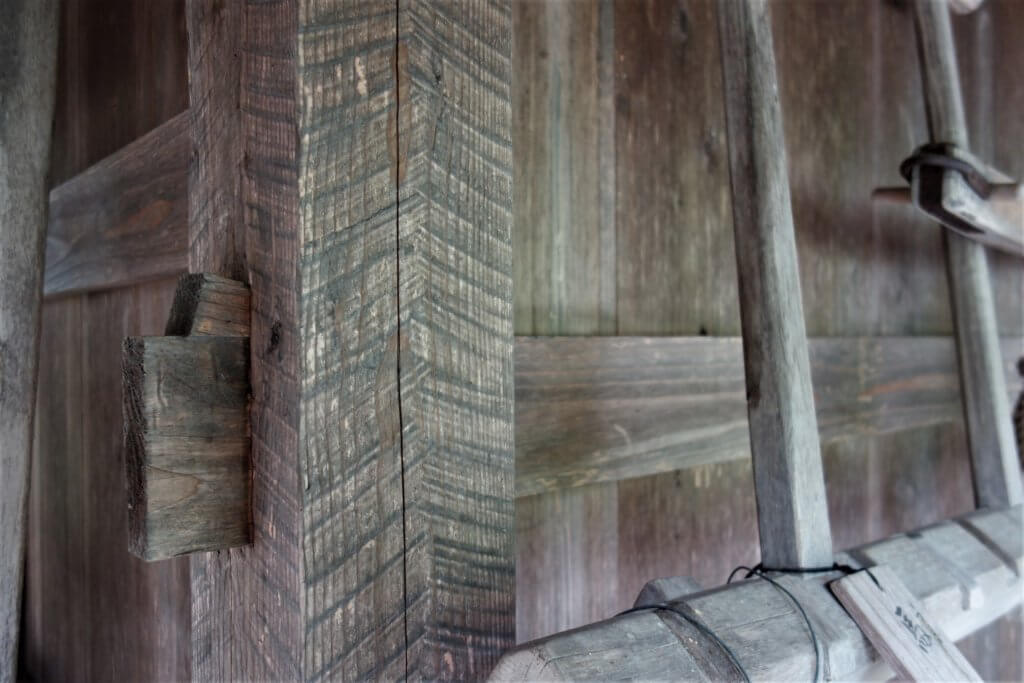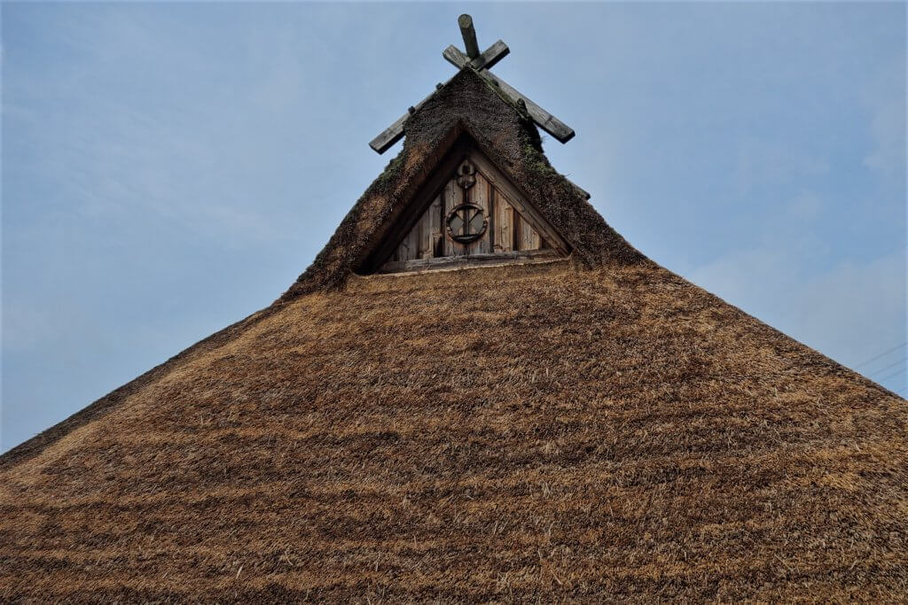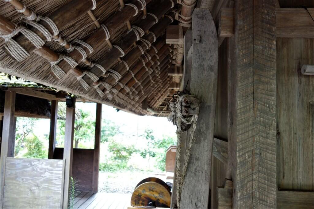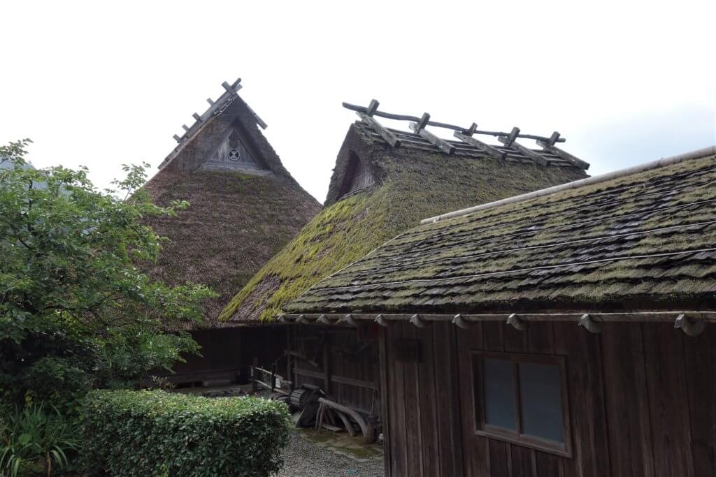 白川郷とは造りの違う入母屋造りのかやぶき屋根が残る。