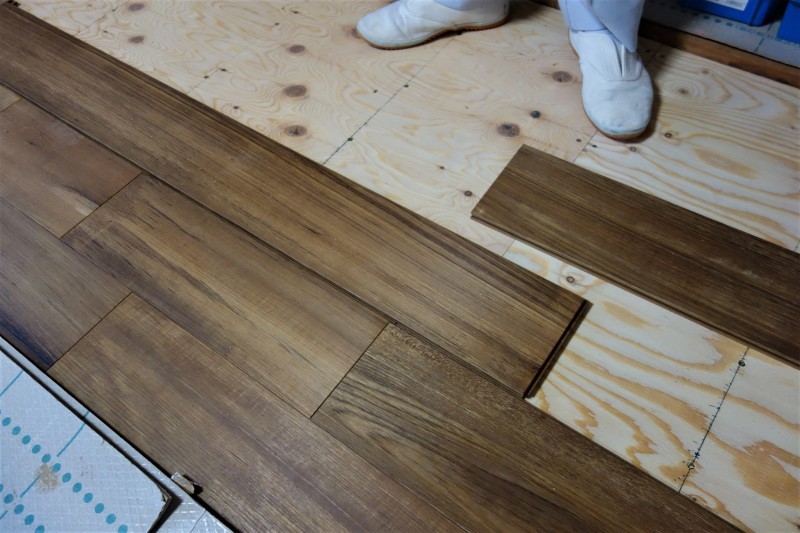 チークフローリング施工は過去何度もやってきたが、最近は単価も高くなったせいか、随分と久々なような・・・