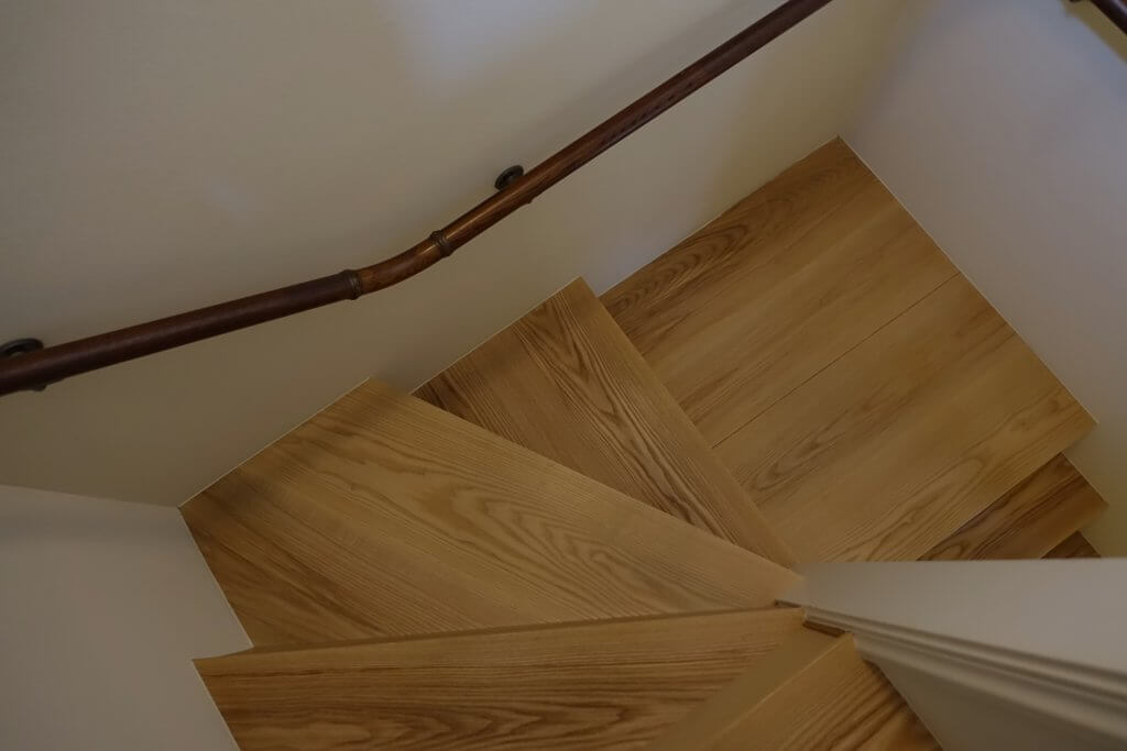楢の床、栗の床、チークの床にアッシュの階段踏板・・