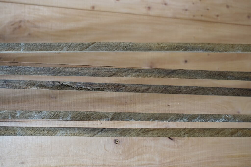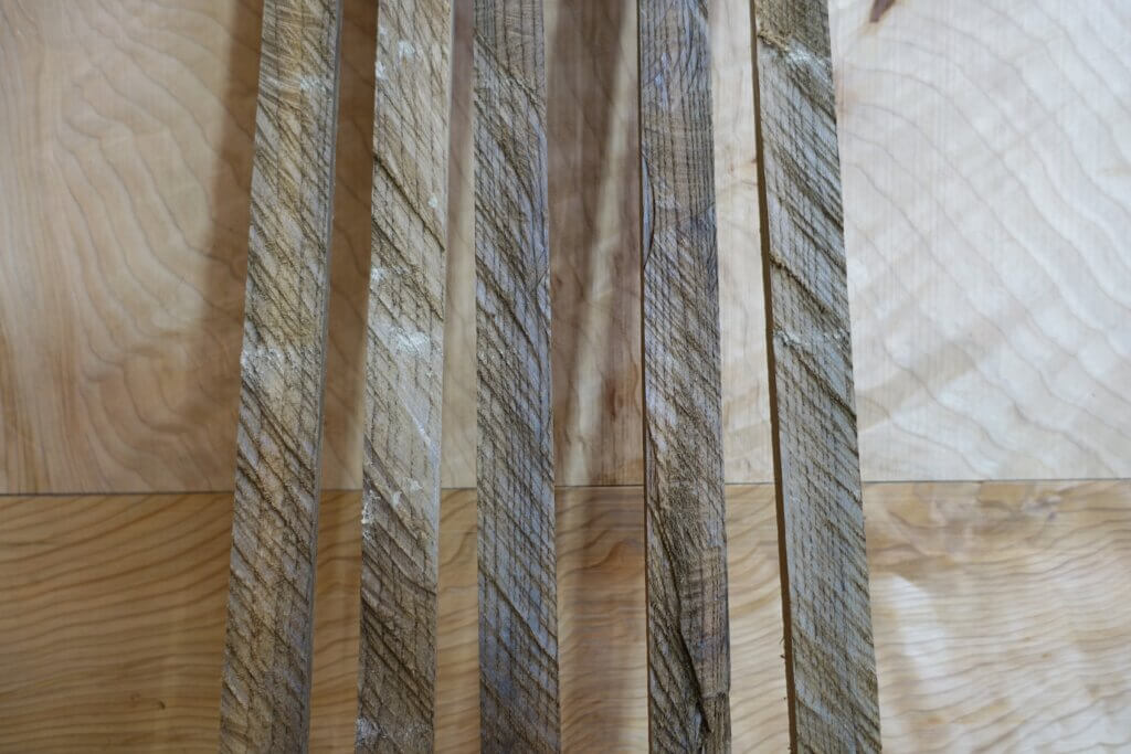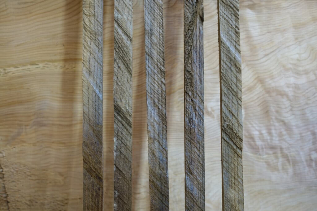 長さ1.8m 巾130mmほどあった切れ端を大工さんに24mm巾の細めの棒に割ってもらい
