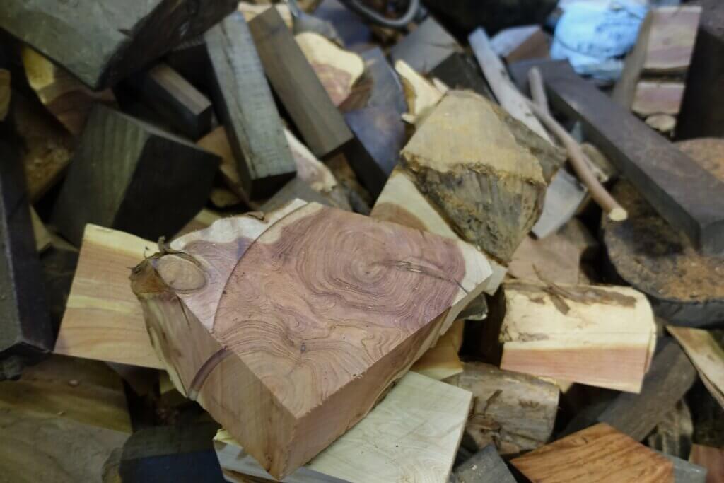 シャムや花梨瘤、イブキと普段見ない材が転がっていて気分があがる。