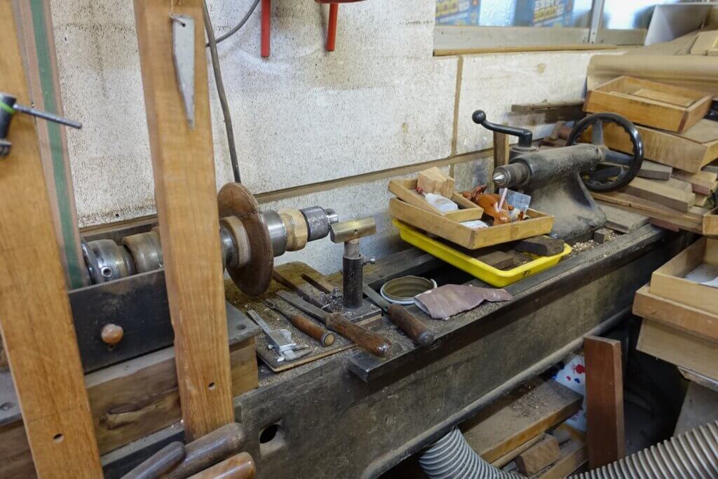 丸棒を作る為に工夫して作られた特注の刃物や治具