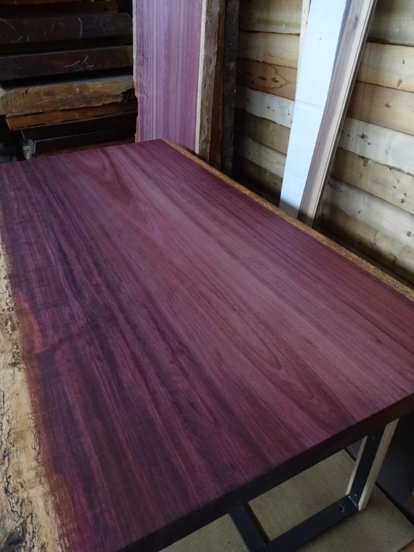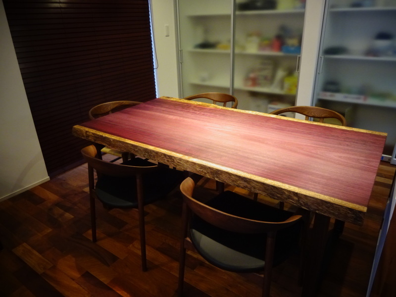 花梨の無垢の床材、テーブルは赤い木(パドック)のするかこの紫にするか?