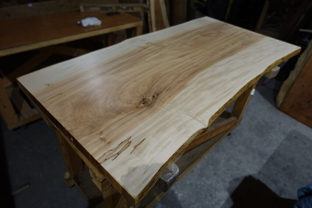 今は耳残しの白太があった方が一枚板天板としては好まれているように思う。